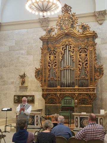 Our last stop for the overture was Christ Church (Espiscopal) which featured two organs for us the hear. First was a late 19th century Hook and Hastings that replaced the original instrument of the same make. The second organ is an two manual, 33 stop instrument modeled after the 1776 Adam Gottlob Casparini organ in Vilnius, Lithuania. David Higgs, Chair of the organ department at Eastman School of Music, was joined by William Porter and they took turns playing and describing the many beautiful sounds of each instrument.