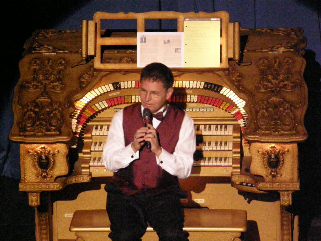 The Dixon Theatre is home to a Barton 3 manual 12 rank theatre pipe organ, which is used for concerts and to accompany silent films. The debut concert commenced on October 15 with the world renowned Theatre Pipe Organist, originally from this area and now living in Phoenix, Ron Rhode. He dazzled area 4th and 5th grade students with the sounds of many familiar Disney tunes, as well as a few 40′s & 50′s tunes.  The day ended with Historic Dixon Theatre’s first Silent Movie being shown in over 40 years while Ron amazed the audience with his non-stop improvisational skills.  The silent movie, “Safety First”, had the audience laughing & Ron had you believing you were listening to a soundtrack.
