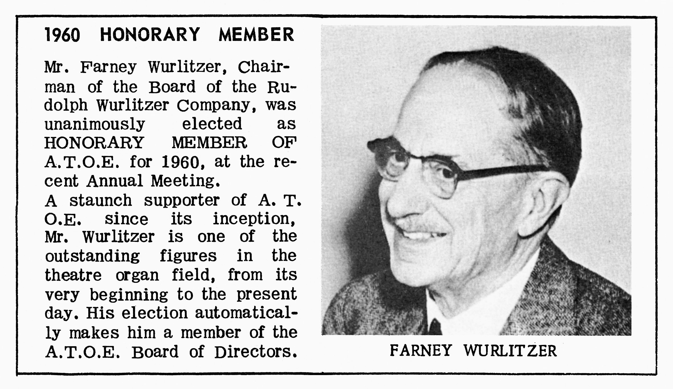 Farny Wurlitzer's 1964 speech to the American Theatre Organ Enthusiasts is presented below.