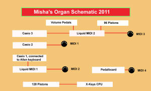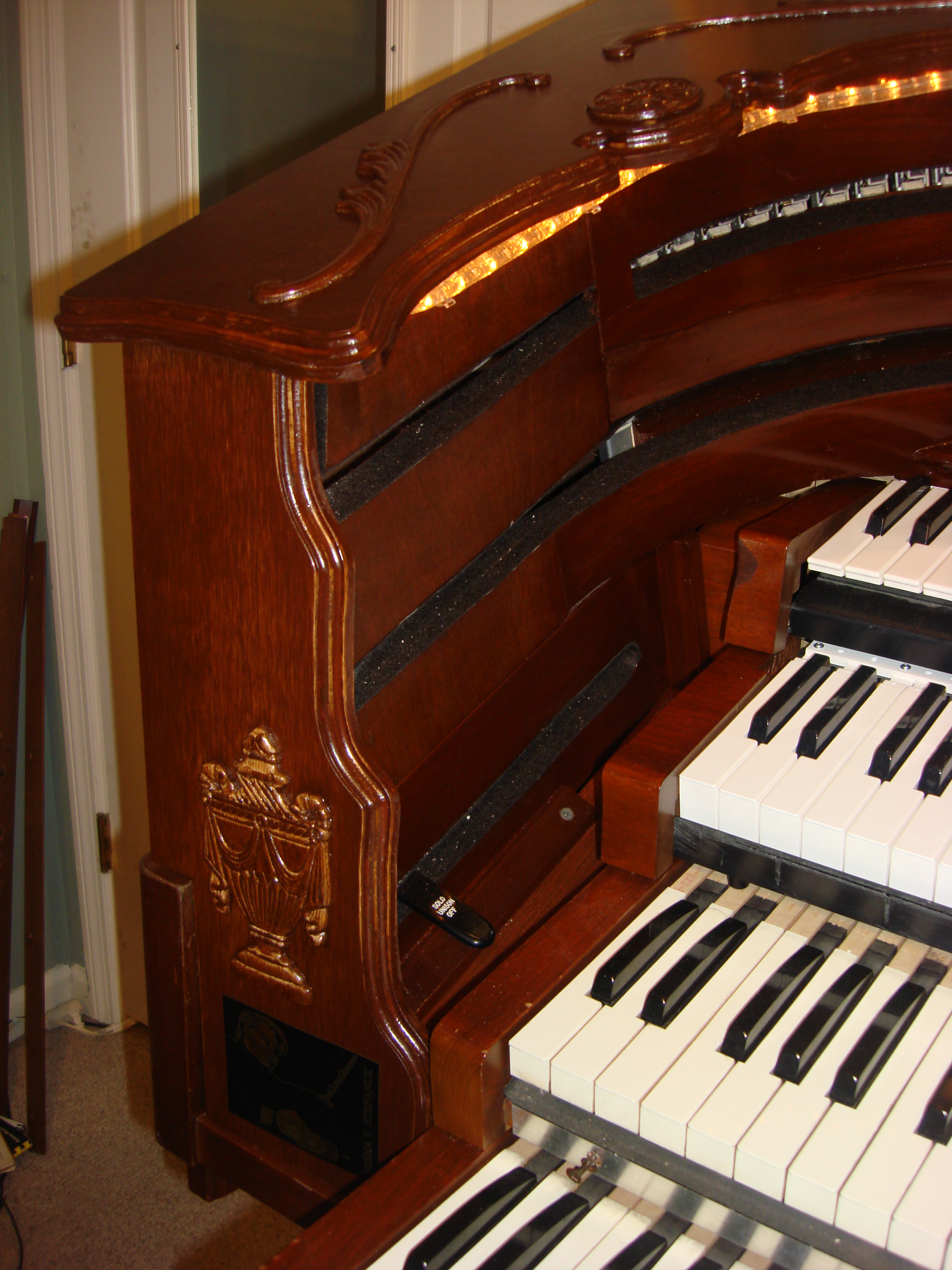 Theatre Organ For LessIs it too much to ask to have a serious Wurlitzer style theatre organ console in your house? I wanted second touch, horseshoe with around 200 Tabs, AGO pedals, four manuals and around 100 buttons/ toe-studs without taking a second mortgage. With the help of ebay and VTPO group on yahoo I have done almost everything possible myself and was able to spend much less money and customize everything. What you see is the result of almost two years of work, from buying an old electronic to playing Paramount 332. The full article in ATOS Theatre Organ Journal describes my progress step-by-step. |