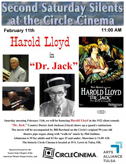 Featuring Harold Lloyd in the 1922 silent comedy "Dr. Jack." Country Doctor Jack Jackson (Lloyd) shows up a quack's sanitarium. The movie will be accompanied by Bill Rowland on the Circle's original 95-year-old theatre pipe organ, along with "walk-in" music by Phil Judkins."