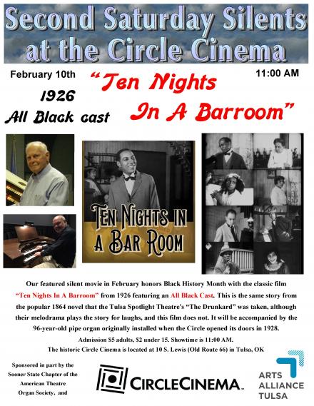 Marking Black History Month, this silent film from 1926, was based on the temperance novel of the same name by Timothy Shay Arthur from 1854. The movie with all-black cast was a production of a company called the "Colored Players Film Corporation" of Philadelphia, whose goal was to produce films that uplifted the African American spirit by combating the humiliating, stereotypical minstrel portrayals of black Americans in the films of that time period. During its brief time operating 1926 to 1929, the production company released four films before going out of business after its final one. The movie will be accompanied by Bill Rowland on the Circle Cinema's original 1928 pipe organ.