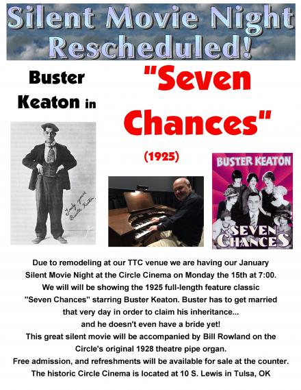 We are showing "Seven Chances," starring Buster Keaton in a hilarious comedy from 1925