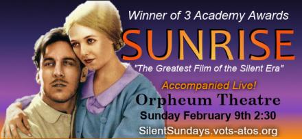 Silent Sundays on February 9th features F.W. Murnau’s romantic drama Sunrise. Sunrise is a story of infidelity, betrayal, and reawakened love that will move you with its beautiful cinematography and storytelling.