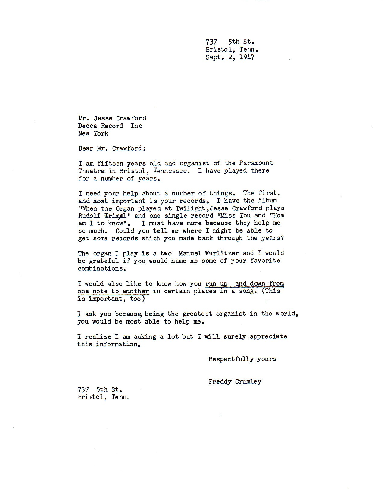Jesse Crawford Letters