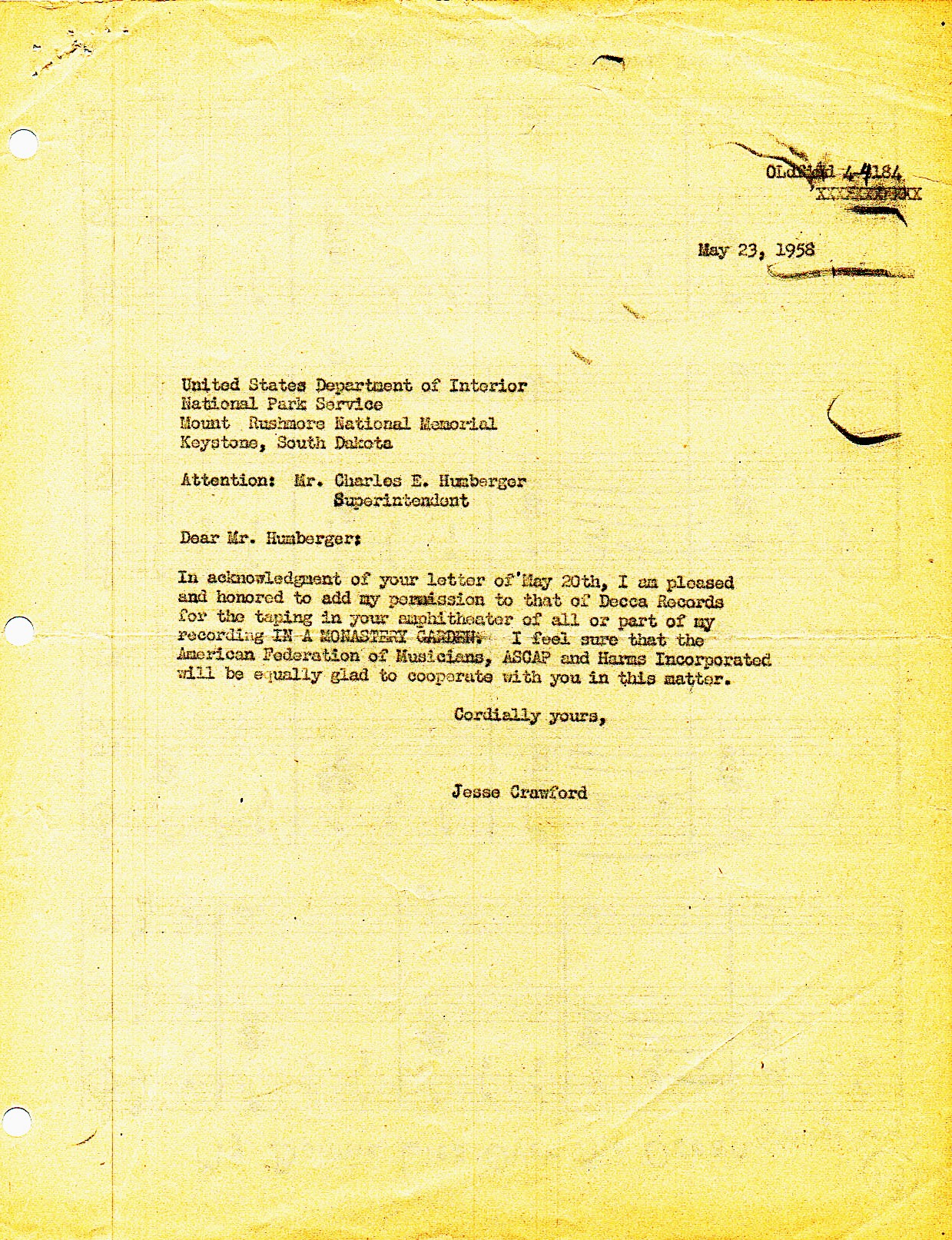 Copies of correspondence from Jesse Crawford courtesy of Dr. John Landon.