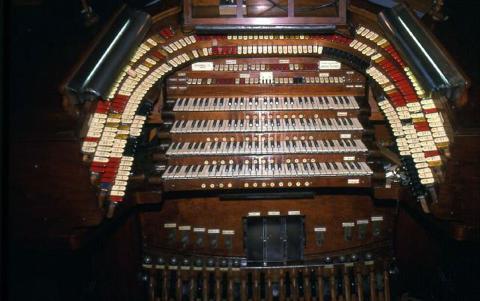 Installed in 1930, the instrument is playable again, after having been silent since the late 1990’s. About $250,000 has been spent on restoring the organ, which has suffered from years of neglect and mistreatment. Much of the damage took place while Boardwalk Hall was undergoing a $90 million restoration project in 2000 and 2001 that turned it into the concert and sports arena it is today. Among the organ improvements: the console has been totally refurbished, a modern electronic relay installed, and the blower restored.