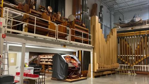 Woebling, a collector of paintings, old Harleys, and self-playing musical instruments, naturally thought of a pipe organ for the space. Jelani Eddington serves as the tonal consultant for the project. Century Pipe Organs, owed by Terry Kleven and Bob Swaney, installed the organ, with additional crew members Ron Mitchell, Zach Frame, Karl Eilers, and Mark Herman. The nucleus of the instrument is the 3/15 Wurlitzer organ that was originally installed in Chicago’s Nortown Theatre. Denver organ enthusiast Dr. Bruce Belshaw purchased the organ in the 1950s and installed it in his home, before it made the current move to the Franklin, Wisconsin warehouse. With many additions, the now 90-rank instrument has extensive tonal colors. The organ has been used for annual company holiday parties, and it is Woebling's desire is to share the instrument and music with the community.